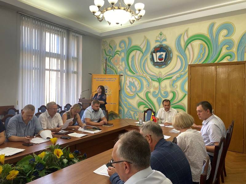 До обговорення питань порядку денного активно долучилися ректор Олександр Шевченко, перший проректор Володимир Яровий, начальниця навчального відділу Тетяна Янюк, директорка Навчально-наукового інституту харчових технологій Оксана Кочубей-Литвиненко, деканка факультету готельно-ресторанного та туристичного бізнесу імені проф. В.Ф. Доценка Віта Цирульнікова, завідувач кафедри машин і апаратів харчових та фармацевтичних виробництв Олександр Гавва, завідувач кафедри технології м’яса і м’ясних продуктів Василь Пасічний, завідувач кафедри електропостачання і енергоменеджменту Сергій Балюта, завідувач кафедри теплоенергетики та холодильної техніки Валентин Петренко.