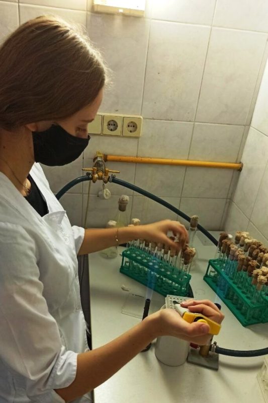 Не менш цікавою є робота над ТЕО у Олени Бахтій і Дар’ї Жалюк, які вивчають можливість використання мікробних поверхнево-активних речовин у суміші з іншими сполуками як ефективних антимікробних агентів. Дар’я Жалюк досліджує можливість використання ПАР Rhodococcus erythropolis IMB Ас-5017 та антибіотиків ципрофлоксацину та офлоксацину для лікування інфекційних захворювань у молочних корів. А Олена Бахтій в основу свого майбутнього ТЕО бере досліди з визначення синергізму антимікробної дії ПАР A. calcoaceticus IMB-7241 та антифунгальних препаратів (флюконазолу та клотримазолу). Вона пропонує використовувати таку суміш для лікування дерматитів у собак і кішок. Тепер студентка може себе назвати експертом у визначенні синергізму, знає проблему поширення дерматитів, підходи до лікування та сучасний ринок антифунгальних препаратів.