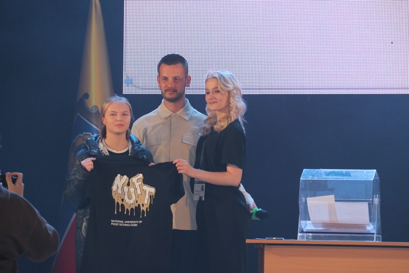 Однією з традиційних родзинок став розіграш серед наших гостей брендованих подарунків, який провели Артем Ущаповський і голова профорієнтаційного сектору студентської ради університету Діана Бондаренко. Умови участі у розіграші незмінні – реєстрація на наш захід і підписка на комунікаційні канали Приймальної комісії та чат Вступника. Цього разу щасливими власниками екошоперів і футболок із символікою університету стали Юлія Бондаренко з міста Дніпро, Вікторія Чулій зі Свято-Петрівського та Олександр Дьомін з Києва.