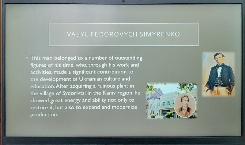 Видатні ділові якості дозволили Федору Симиренку, якого вважають засновником династії (1787-1867), викупити родину з кріпацтва, досягти видатних успіхів у підприємництві і стати одним із перших цукрозаводчиків у країні. Його сини Платон і Василь примножили багатства і славу родини. Життєвими правилами родини були – чесність, наполеглива праця, вміння ризикувати і сміливість у веденні підприємницької діяльність, патріотизм і відданість своїй рідній землі, кращим традиціям свого українського народу. Не зважаючи на царські укази, які забороняли українську мову в царській Росії, Симиренки не тільки розмовляли українською мовою в сімейному колі, але й зробили видатний вклад у розвиток української культури, видавничої справи, були меценатами, підтримували вчених і діячів культури, будували школи, лікарні, ввели високі соціальні стандарти для працівників своїх фабрик і заводів.