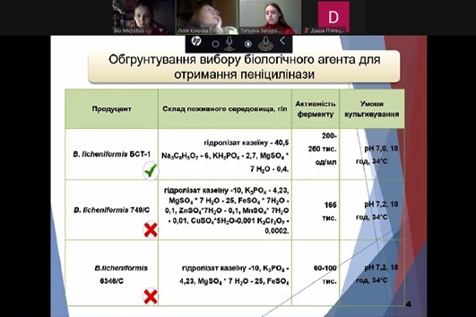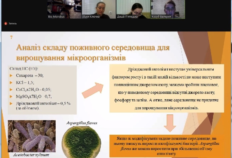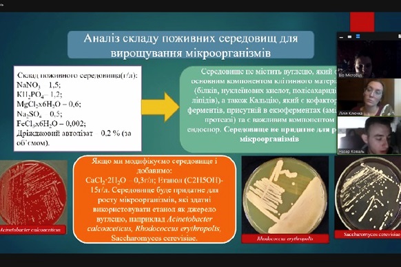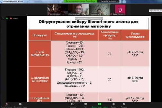 На кафедрі біотехнології і мікробіології відбувся захист курсових робіт з дисципліни «Загальна мікробіологія і вірусологія». Ця курсова є початковою, так би мовити відправною точкою, у написанні майбутнього диплому. У рамках її виконання здобувачі шукали інформацію про властивості, сфери застосування та виробників цільового продукту мікробного синтезу. Обирали, на основі аналізу складу поживного середовища, умов культивування найкращий біологічний агент. Вчилися аналізувати склад поживного середовища та визначати параметри росту мікроорганізмів у періодичній культурі.
