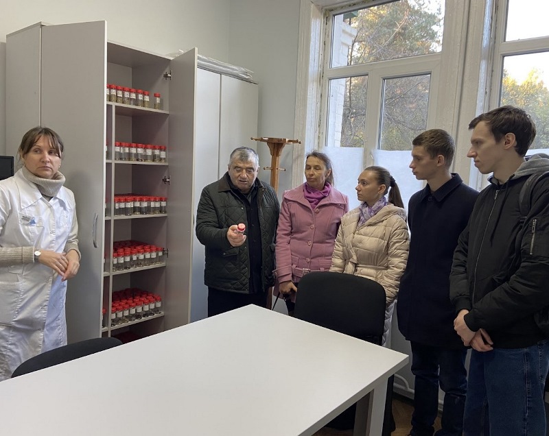 Професор Джамал Рахметов, один із провідних учених України в галузі рослинництва, агробіології і рослинних біотехнологій, зацікавив гостей інформацією щодо інноваційних методів досліджень перспективних видів рослинної сировини, які проводяться у лабораторії наукового відділу.