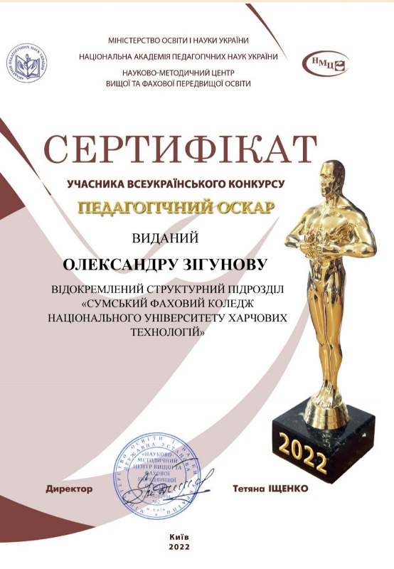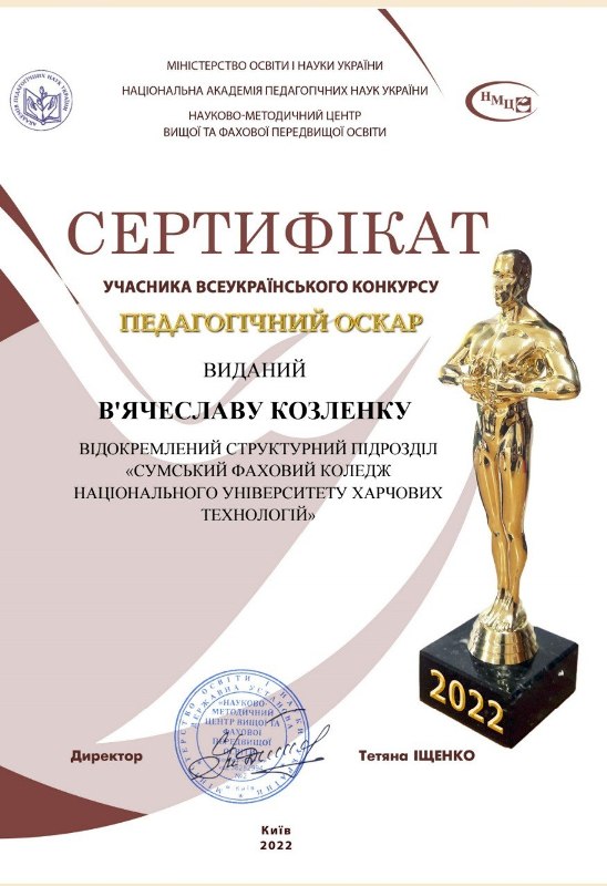 Щорічно педагогічні працівники Відокремленого структурного підрозділу «Сумський фаховий коледж НУХТ» беруть активну участь у конкурсі професійної майстерності «ПЕДАГОГІЧНИЙ ОСКАР», який проводить Навчально-методичний центр вищої та фахової передвищої освіти спільно з Національною академією педагогічних наук України.