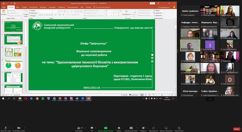 11 квітня 2024 у рамках 90-ї Ювілейної Міжнародної наукової конференції молодих учених, аспірантів і студентів «Наукові здобутки молоді – вирішенню проблем харчування людства у ХХІ столітті» відбулася підсумкова Науково-практична конференція ІІ етапу Всеукраїнського конкурсу студентських наукових робіт за спеціальністю «Готельно-ресторанна справа» 2023-2024 н.р.