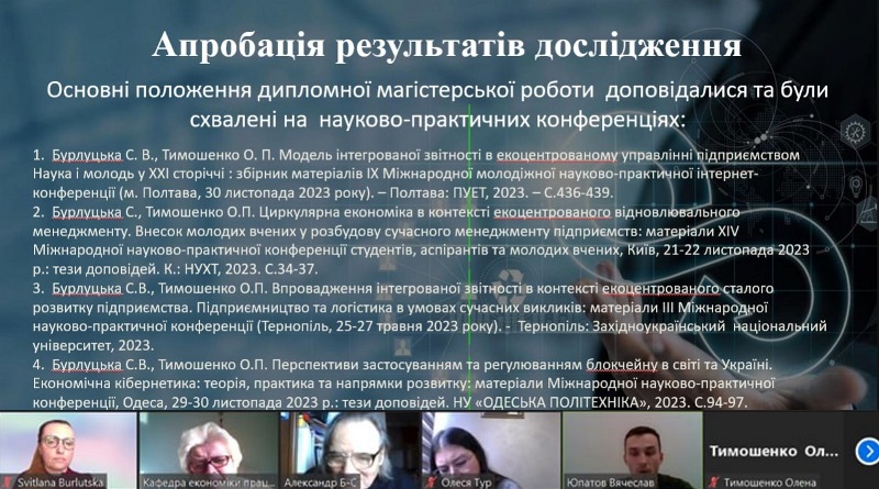 У Навчально-науковому інституті економіки і управління завершено сесію захистів магістерських дипломних робіт за освітньо-професійною програмою «Менеджмент організацій і адміністрування». Наші здобувачі освіти вкотре продемонстрували здатність генерувати продуктивні управлінські рішення, незважаючи на складні умови воєнного часу.