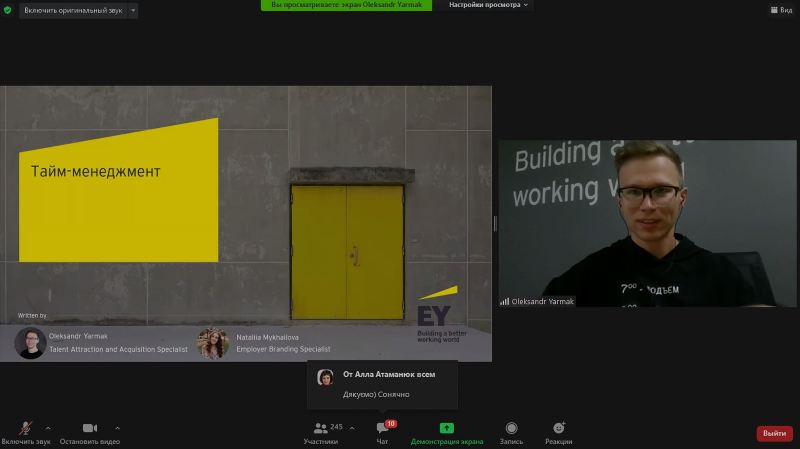 Представники компаній-учасників Coca-Cola, Genesis, JTI, Yalantis, KPMG, EY поділилися досвідом створення навчальних кейсів, мотивації студентів навчатися офлайн, розповіли про навички тайм-менеджменту та особистої ефективності, застосування методу Agile в освіті, опрацювання великої кількості аналітичної інформації та перетворення її у кейс.