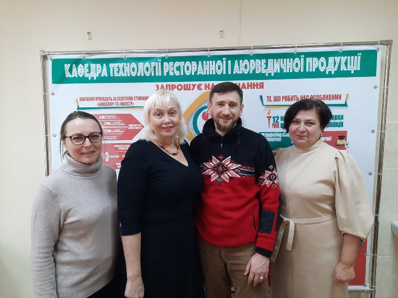 2 грудня 2022 року на кафедрі технології ресторанної і аюрведичної продукції відбулась нарада зі стейкхолдером освітньо-професійної програми «Технології дієтичної та аюрведичної харчової продукції» підготовки здобувачів освітнього ступеня «магістр» спеціальності 181 «Харчові технології», генеральним директором ТОВ «Шльосем Україна», головою Президії асоціації виробників фітосировини України Романом Михайличем.