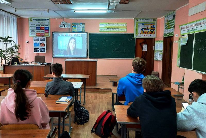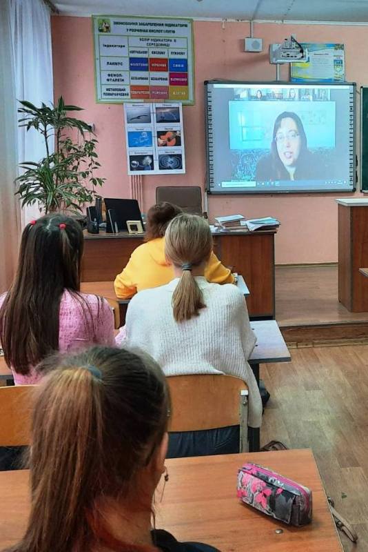 Отже, маючи достатній досвід проведення подібних конференцій, за ініціативи колишньої учениці ліцею, а нині студентки факультету Олександри Побути була організована ця зустріч. Загалом відбулися дві відеоконференції з учнями 10-го та 11-го класів. З боку НВК організатором зустрічі виступила вчителька хімії вищої категорії, вчителька-методистка, к.х.н. Надія Хринюк.