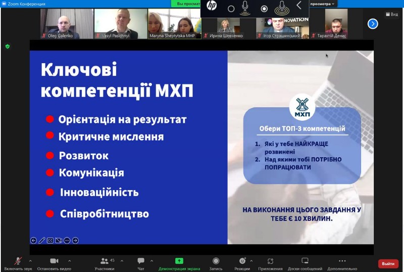 Фахівчиня з проєктів по роботі з молоддю департаменту стратегії та методології управління персоналом Марина Шептицька презентувала ПрАТ МХП – найбільшого виробника та експортера курятини в Україні та зазначила, що компанія спеціалізується на виробництві курятини та вирощуванні зернових, а також веде іншу аграрну діяльність (виробництво м'ясо-ковбасних виробів і м'ясних виробів, готових до вживання). Продукція МХП представлена на ринках понад 85 країн світу. МХП належать успішні, добре відомі споживачам бренди «Наша Ряба», «Qualiko», «Ukrainian Chicken», «Sultanah», «Assilah», «Секрети Шефа», «Kurator», «Легко!», «Бащинський», «РЯБCHICK».