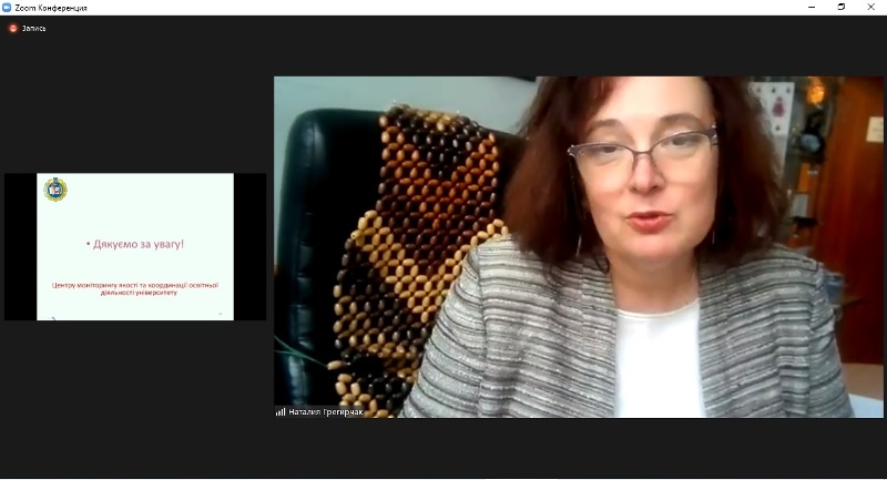 Про моніторинг ЕНМКД на платформі дистанційного навчання доповіла начальниця відділу дистанційного навчання Оксана Петруша. Вона повідомила, що протягом осіннього семестру 2021-2022 н. р. сформовані 1300 курсів для забезпечення навчального процесу для здобувачів денної форми навчання та зареєстровані понад 1200 здобувачів. Для здобувачів стаціонару протягом шести перших тижнів весняного семестру 2021-2022 н. р. – з 10 січня до 18 лютого 2022 р. буде проводитись дистанційний період, для чого повинні бути наповненні та оновлені 1300 ЕНМКД. На заочну дистанційну форму навчання у 2021 році були зареєстровані на платформі дистанційного навчання близько 150 здобувачів. Для забезпечення заочної/дистанційної форми навчання актуалізований перелік курсів на поточний навчальний рік. Консультації з особливостей роботи у системі дистанційного навчання надаються очно та дистанційного через форум для викладачів, електрону пошту та через месенджери.