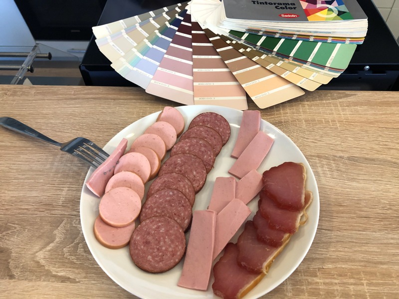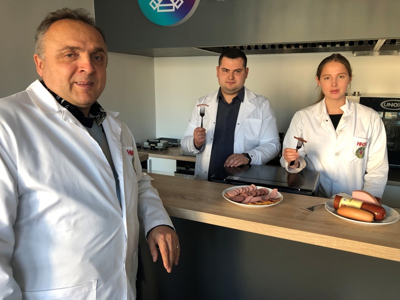 Сповнені вражень після проходження довготривалого високооплачуваного стажування на найсучасніших підприємствах Європейського союзу – виробничих потужностях м'ясопереробних підприємств компанії ТОВ «Алльфайн Файн Кост», здобувачі приступили до першого лабораторного заняття «Застосування методів і шкал для органолептичного оцінювання якості м’ясних виробів» із навчальної дисципліни «М'ясні технології. Модуль 3.Технології ковбасного виробництва», яке провів доцент кафедри Ігор Страшинський.