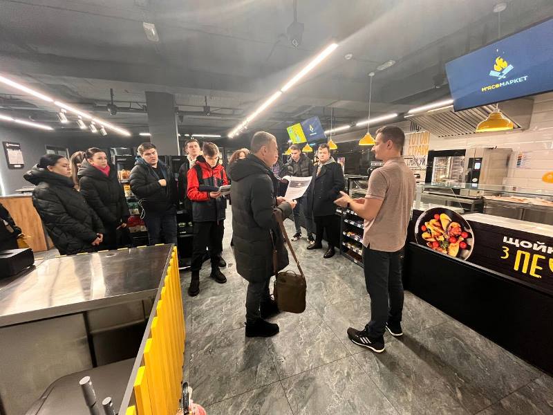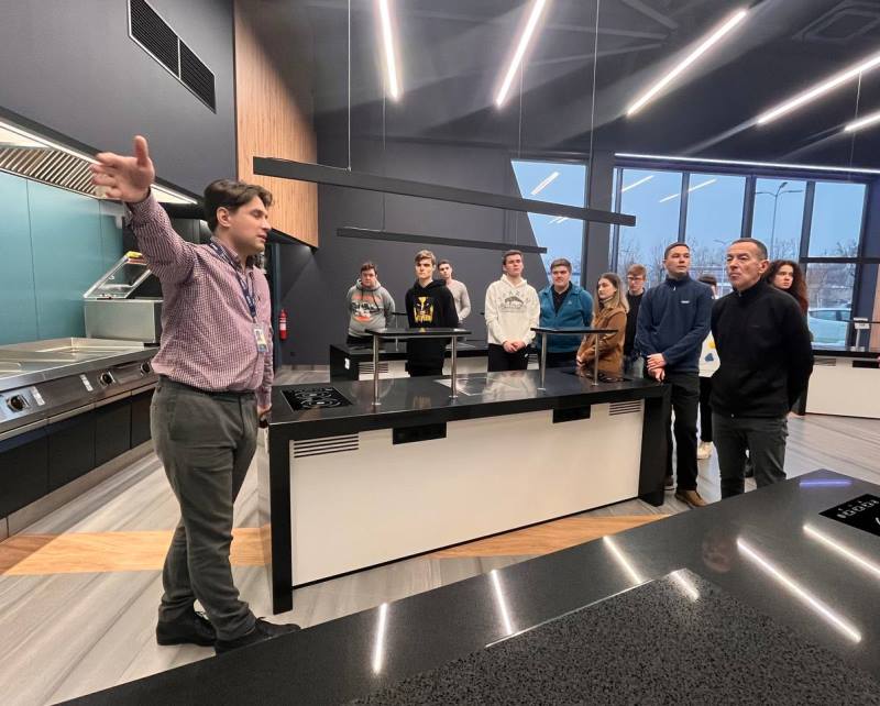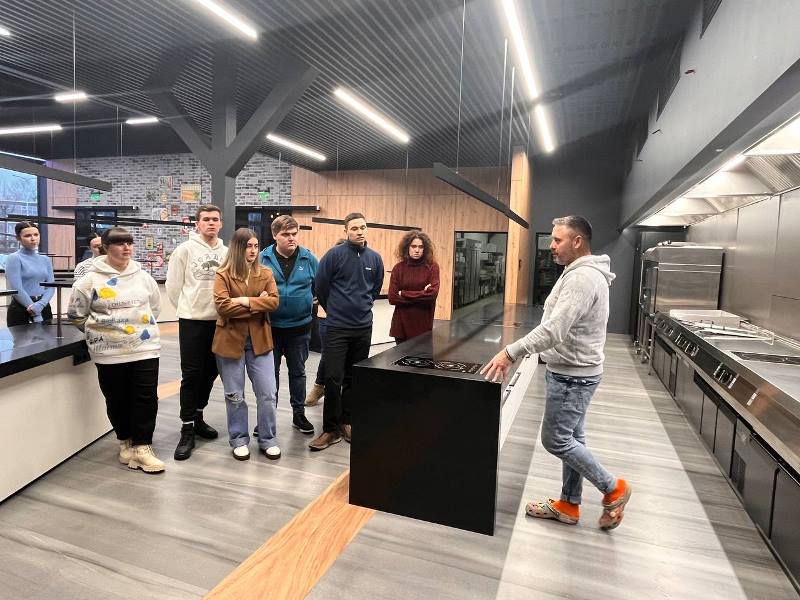 Знайомство з центром розпочалося з екскурсії по території індустріальної кухні, з унікальною виробничою лінією та сучасним обладнанням, яке дозволяє створювати страви ресторанного рівня. Потужні автоклави, унікальні котли, розроблені українськими інженерами, установки шокового охолодження, інноваційне обладнання «Hiperbaric», на якому пастеризують продукти під високим тиском, високопродуктивні трейсилери «Multivac» та «Ulma» – це лише частина обладнання, з яким ознайомилися та отримали практичну інформацію здобувачі освіти й викладачі.