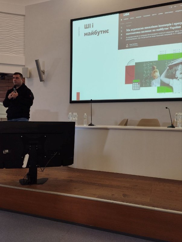 Олександр Краковецький навів багато цікавих прикладів того, як ШІ змінює наше життя, показав на прикладі ,як уміння користуватися новітніми технологіями допомагає у житті та роботі.