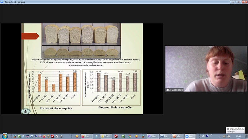 На кафедрі технології хлібопекарських і кондитерських виробів у онлайн-режимі відбулося засідання секції «Технологія хліба, кондитерських, макаронних виробів та харчоконцентратів» 87-ї Міжнародної наукової конференції молодих учених, аспірантів і студентів «Наукові здобутки молоді – вирішенню проблем харчування людства у XXI столітті». Засідання секції урочисто відкрив завідувач кафедри, професор Володимир Ковбаса.