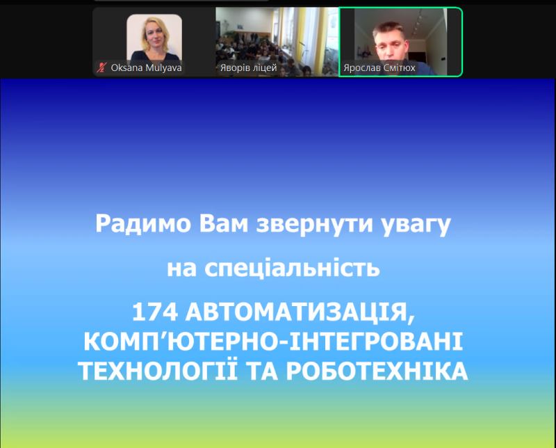 Сьогодні завідувач кафедри автоматизації та комп’ютерних технологій систем управління ім. проф. А.П. Ладанюка Ярослав Смітюх прочитав онлайн-лекцію «Цікаве про автоматизацію та робототехніку» для учнів дев’ятих і десятих класів яворівського ліцею імені Осипа Маковея.