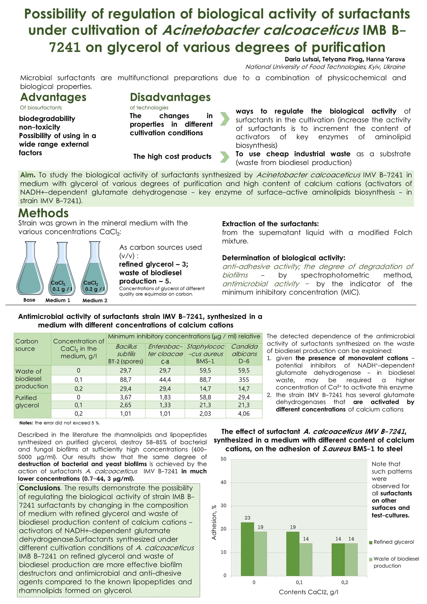 Зокрема, молоді науковці кафедри біотехнології і мікробіології – активні учасники студентського наукового гуртка «Biotech», здобувачі І-ІІІ рівнів вищої освіти та молоді викладачі представляють стендові доповіді у секції «Біотехнології та біоінженерія». Їхня тематика охоплює широке коло питань сучасних біотехнологій, а також особливостей одержання різних субстанцій, які отримують із використанням мікроорганізмів і у подальшому використовують для виготовлення лікарських засобів.