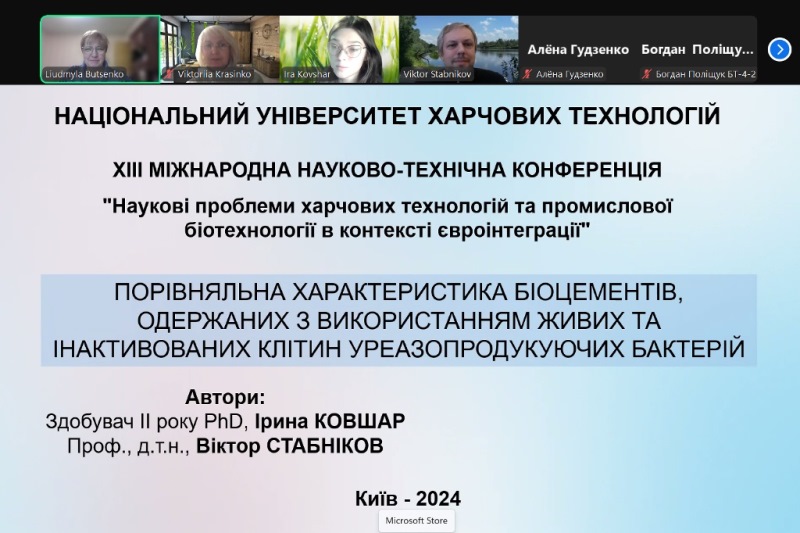 Крім того, на секційному засіданні були представлені доповіді здобувачів кафедри біотехнології і мікробіології: «Порівняльна характеристика біоцементів, одержаних з використанням живих та інактивованих клітин уреазопродукуючих бактерій» аспірантки Ірини Ковшар (науковий керівник – професор Віктор Стабніков); «Перспективи використання базидієвих грибів у біотехнологіях для створення білоквмісних продуктів із лікувально-профілактичними властивостями» аспіранта Всеволода Герасименка (наукова керівниця – доцентка Вікторія Красінько); «Біотехнологічний потенціал дріжджів Kluyveromyces marxianus» магістрантки Анастасії Онищенко (наукова керівниця – доцентка Оксана Скроцька); «Актуальність і перспективи виробництва розчинників методом мікробіологічного синтезу» бакалавра Богдана Поліщука (науковий керівник – старший викладач Віктор Удимович).