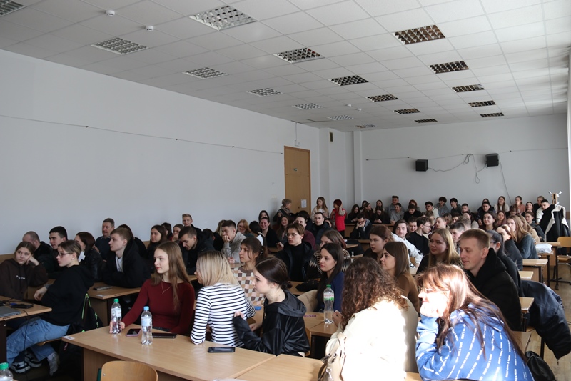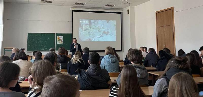 ПрАТ «МХП» добре відоме нашим студентам, адже холдинг – давній партнер нашого університету по багатьох проєктах, але вони ніколи не втрачають нагоди поспілкуватися з фахівцями підприємства, дізнатися про останні новини, відкриті вакансії, можливості проходження стажування чи навчання за дуальною формою. Сьогоднішня зустріч не стала виключенням – здобувачі освіти пройшли інтерактивне опитування щодо своїх спеціальностей і планів на майбутню роботу, прослухали захоплюючу презентацію компанії, а в кінці продемонстрували свою поінформованість щодо діяльності холдингу у квізі, переможець якого став власником крутого брендованого шопера.