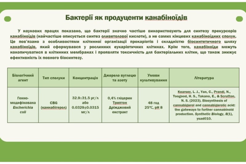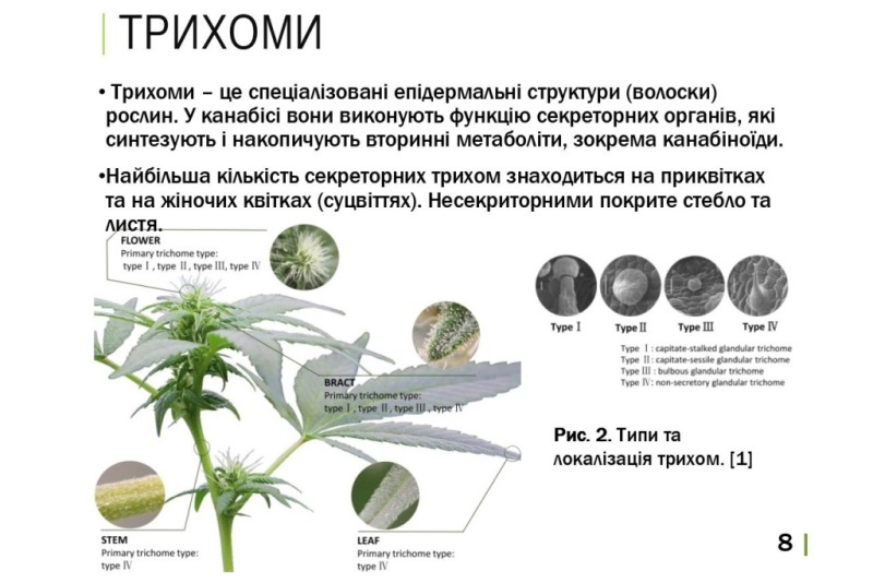 Також розглянули комплекс унікальних для конопель сполук – канабіноїдів, які можна класифікувати на 11 підкласів. Та з’ясували, що коноплі є джерелом не лише канабіноїдів, оскільки рослина канабісу має понад 400 ідентифікованих неканабіноїдних компонентів, які класифікуються на чотири основні категорії: неканабіноїдні феноли, флавоноїди, терпени, алкалоїди. Терпени відповідають за запах і смак конопель, тоді як флавоноїди впливають не тільки на запах і смак, але й на унікальний колір кожного сорту.