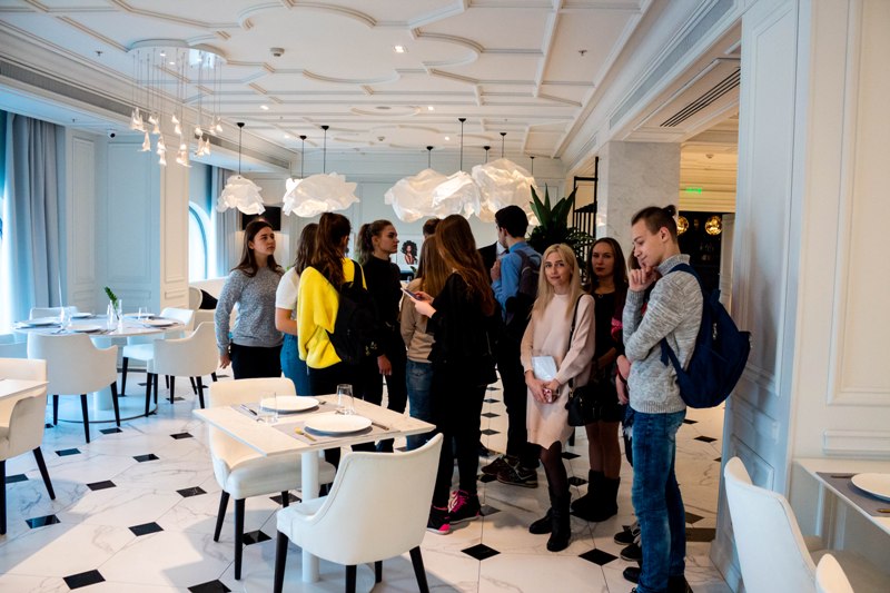 Метою заняття стало безпосереднє знайомство вступників кафедри із престижним місцем майбутнього працевлаштування, а також налагодження тісної співпраці кафедри зі школами та підприємствами готельно-ресторанного бізнесу. Так, школярам випала змога наочно ознайомитись зі структурою номерного фонду (номери стандарт, напівлюкс, люкс і президентський), кращим рестораном при готелі «Vogue Café Kiev» (за версією Національної ресторанної премії Соль), СПА-зоною і бізнес-центром сучасного п’ятизіркового готелю. До організації та активної участі в занятті долучився також студент факультету готельно-ресторанного та туристичного бізнесу (ГРТБ) спеціальності 242 «Туризм» Данило Маслов, який працює адміністратором служби прийому і розміщення готелю «Fairmont Grand Hotel Kyiv». Данило з власного досвіду розповів школярам про важливість і переваги вибору своєї професії, необхідність постійного саморозвитку і прагнення до наполегливого навчання.