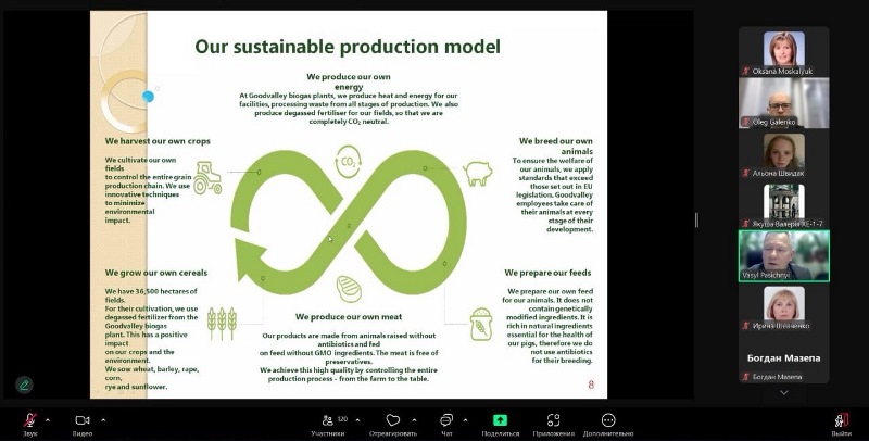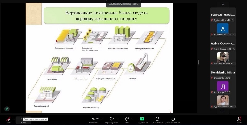 На прикладі порівняння структури й діяльності вітчизняних і закордонних агрохолдингів, з якими кафедрою технології м'яса і м'ясних продуктів укладені договори про співпрацю, здобувачі познайомилися з перспективними напрямками та інноваціями щодо використання основних видів сировинних ресурсів і тенденціями у галузі глибокого перероблення продуктів тваринництва і рослинництва на сучасних підприємствах м'ясопереробної галузі.