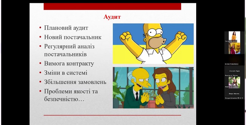 Лекторій відбувся у рамках вивчення дисципліни «Основи управління якістю та безпечністю харчових продуктів. Модуль 2. НАССР і системи управління безпечністю харчової продукції» для здобувачів четвертого курсу освітнього ступеня «бакалавр» спеціальності 181 «Харчові технології», освітньо-професійної програми «Технологічна експертиза та безпека харчової продукції».