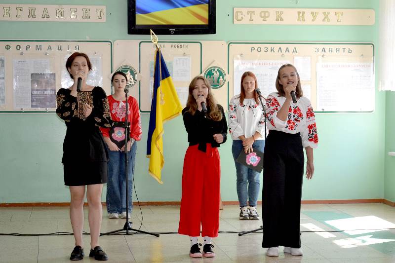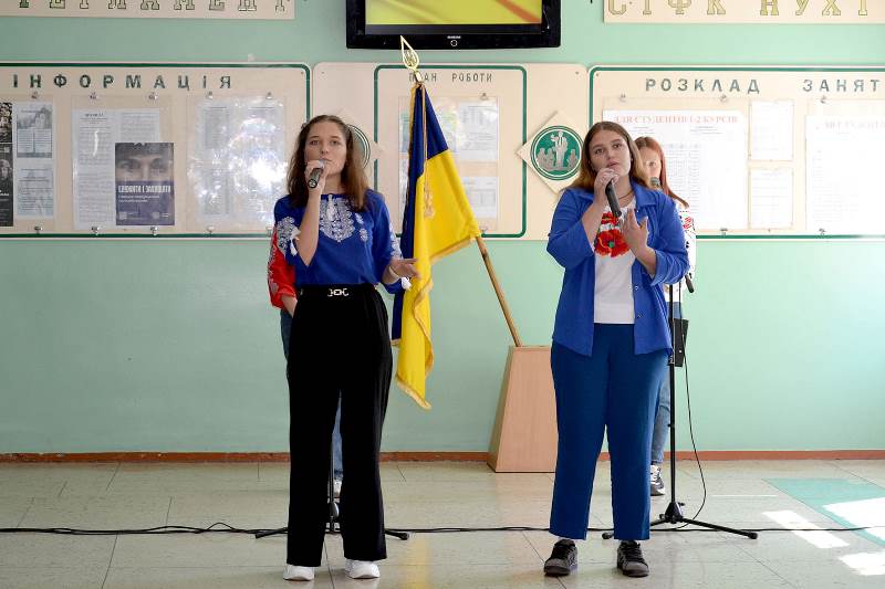 Перший від початку нового навчального року патріотичний захід «Прапор єднає вільних!» провели активісти студентського самоврядування та учасники художньої самодіяльності Смілянського технологічного фахового коледжу НУХТ для студентів другого та третього курсів 23 серпня на великій перерві.