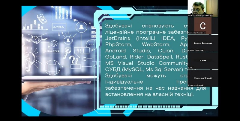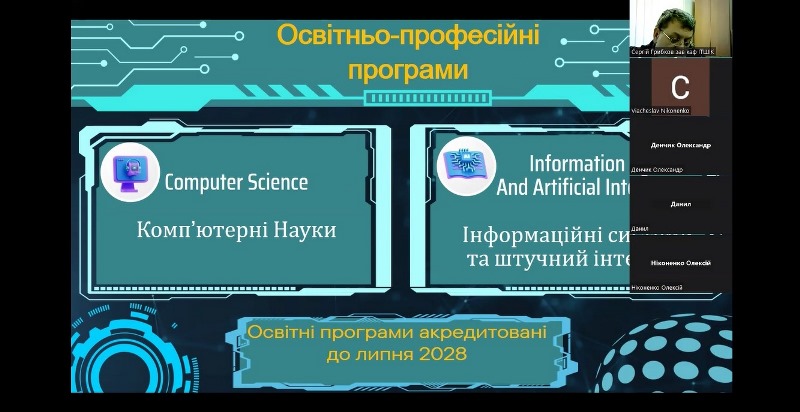 26 квітня 2024 року завідувач кафедри інформаційних технологій, штучного інтелекту і кібербезпеки НУХТ, доктор технічних наук, професор Сергій Грибков зустрівся в онлайн-форматі зі здобувачами Комунального закладу «Харківський науковий ліцей «Обдарованість» Харківської обласної ради.