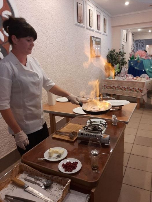 Далі були кулінарний марафон, приготування коктейлів, карвінг, фламбування, складання серветок, розпис картин шоколадом і створення картин із круп.