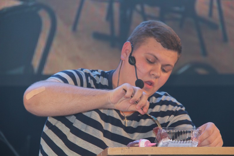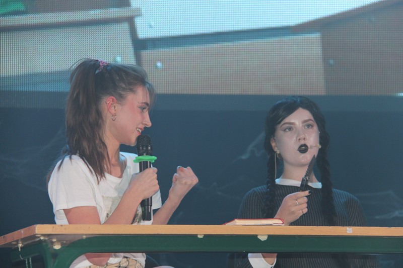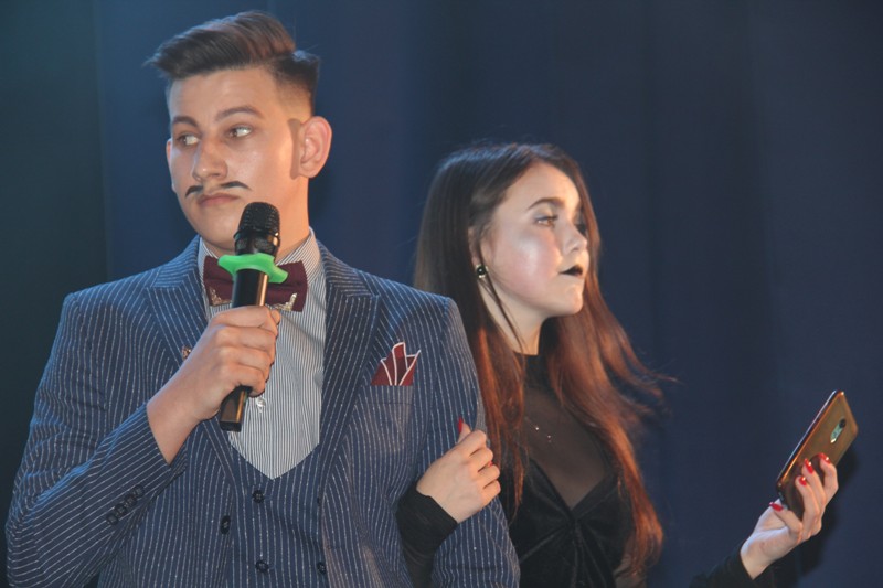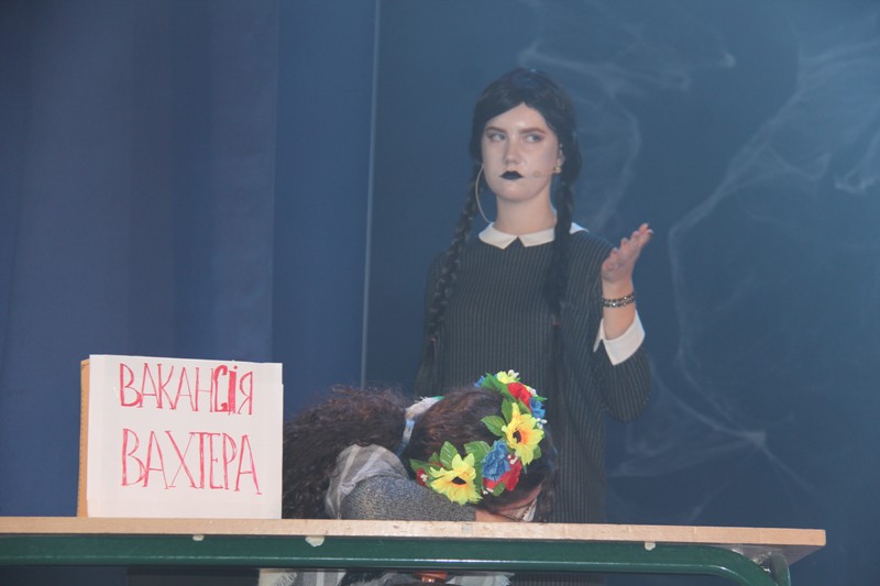 На фоні справжнього франта Гомеса, звично химерної Мортіши, блідої Венздей то з ножем, то з сокирою та пухкенького Пагслі яскраво виділилися дворецький Рослий (в оригіналі – Ларч) і бабця Адамс. Перший, виявляється, шикарно танцює сучасні танці, ще й підспівує вокалістам, другу взагалі вразила стріла Амура й всю постановку бабуся шукала Олександра Тимченка (відповідальний по інституту за роботу зі студентами) то у глядацькій залі, то у соцмережах.
