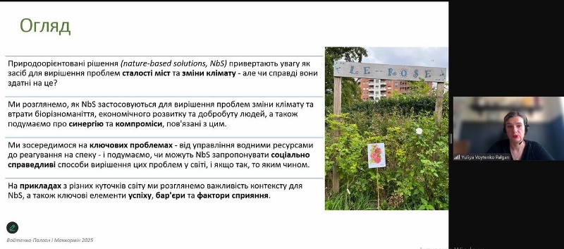 Здобувачі освіти та викладачі щиро вдячні докторці Юлії Войтенко-Палган за цікаву лекцію з реальними прикладами природоорієнтованих рішень із різних куточків світу та активне обговорення.