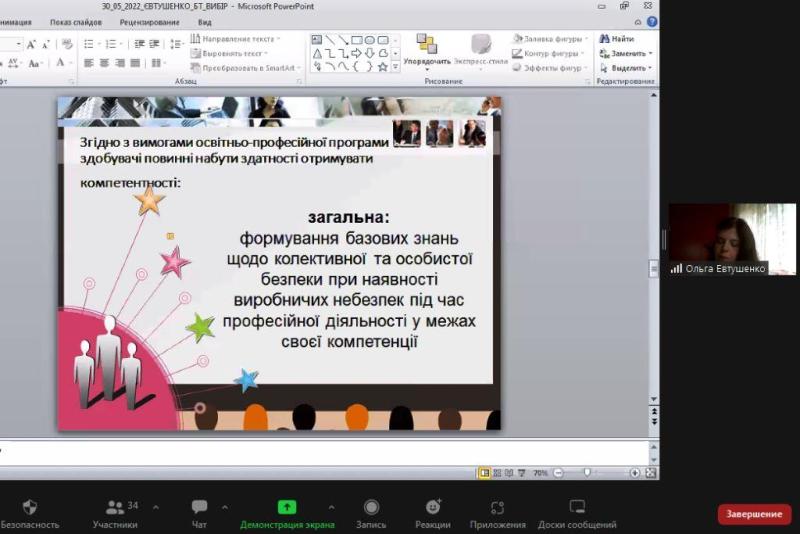 Гарантка роз’яснила процедуру обрання дисциплін відповідно до Порядку вибору здобувачами освіти навчальних дисциплін на 2022-2023 н.р. та Положення про порядок реалізації здобувачами вищої освіти права на вільний вибір навчальних дисциплін у Національному університеті харчових технологій та наголосила на датах проведення першого і, за необхідності, другого туру електронного голосування. Представлена гаранткою презентація дозволила здобувачам чітко зрозуміти сукупний обсяг обов’язкової та вибіркової складових, а також визначити з якого переліку дисциплін потрібно зробити вибір, обсяг навчальних дисциплін і семестр викладання.