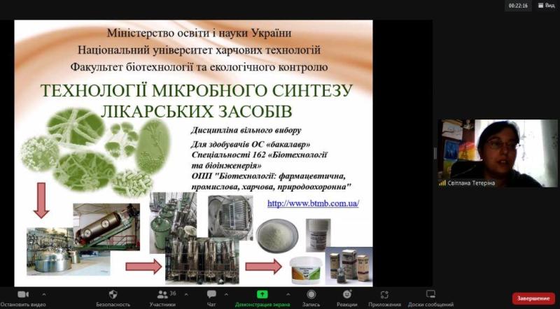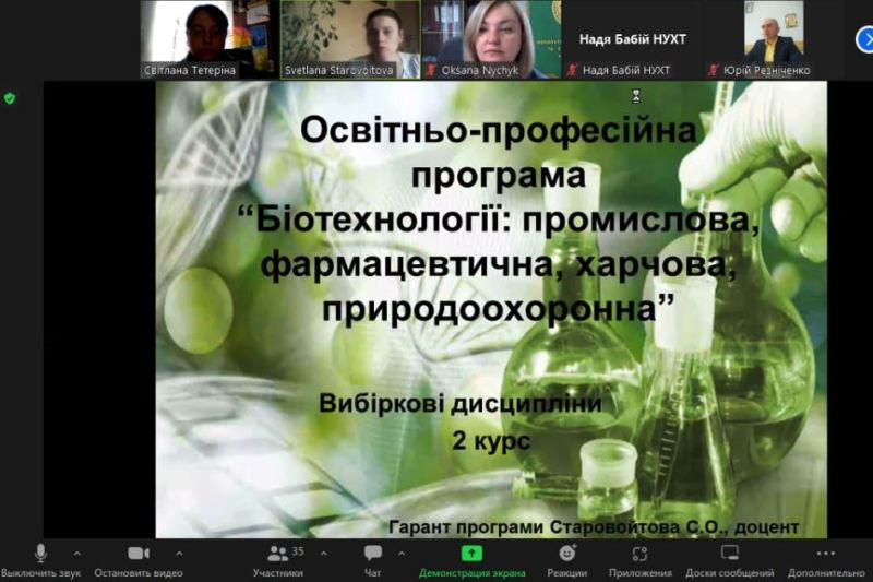 До спілкування зі здобувачами долучилися лектори дисциплін, а також завідувач кафедри біотехнології і мікробіології Віктор Стабніков і заступник декана факультету біотехнології та екологічного контролю Юрій Резніченко.