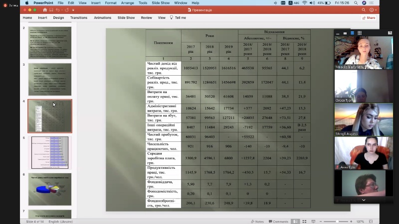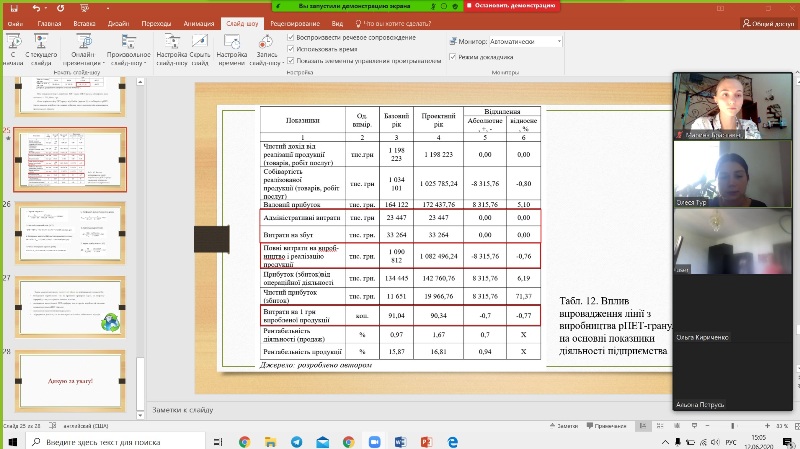 Не зважаючи на те, що це відбувалося вперше дистанційно в режимі онлайн-конферецій на платформі Zoom, коли учасники процесу захисту, включаючи всіх членів Екзаменаційної комісії, голову, секретаря й здобувача, знаходилися абсолютно відокремлено, результати приємно вразили, оскільки виступи випускників були ґрунтовними, підготовлені ними презентації достатньо наочними, відповіді на питання жвавими, дискусії – цікавими та повчальними.