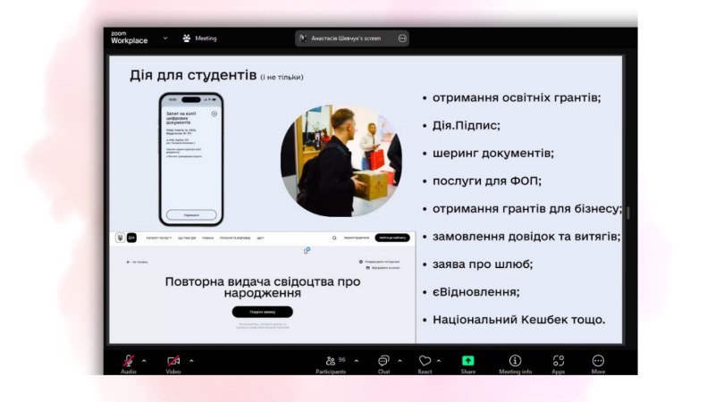 Та найбільше слухачів вразила власна історія Анастасії: від пошуку роботи на початку повномасштабного вторгнення, до оператора з підтримки в «Дії», тімліда команди надважливого проєкту і аж до junior та middle project manager «Дії».