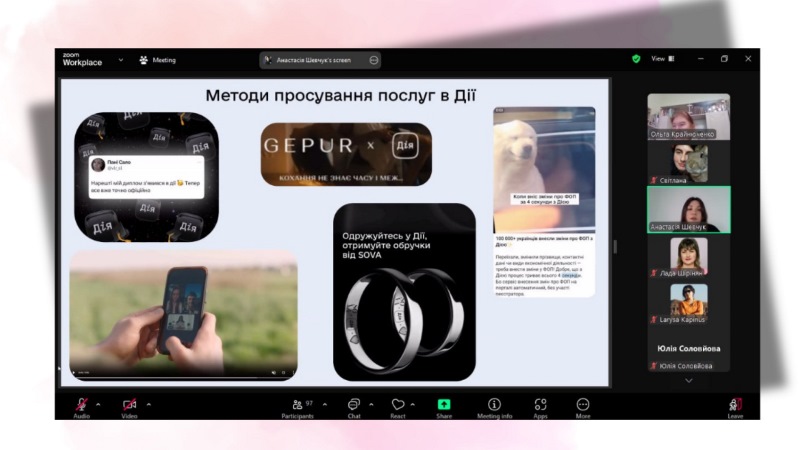 Виявляється, «Дія» може зробити значно комфортнішим життя студента, і не тільки. Найцікавішою частиною гостьової лекції були маркетингові комунікації і просування послуг у «Дії», неочікувані колаборації з ювелірними та іншими брендами, зворотній зв’язок від клієнтів, лайфхаки з-за лаштунків «Дії», супроводження послуг, воронка звернень, моніторинг якості сервісу та ще багато цікавого.
