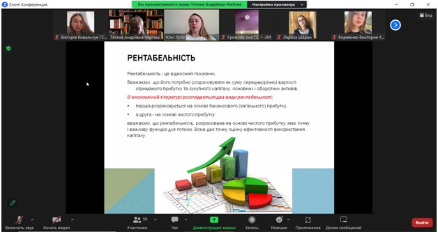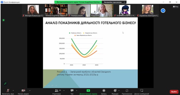 25 вересня 2023 року в рамках вивчення дисципліни «Економіка і аналіз діяльності підприємств галузі» для здобувачів освіти 4-го курсу спеціальності 241 «Готельно-ресторанна справа» відбувся гостьовий лекторій. Доповідачка – Лілія Юнг, управителька парк-готелю KIDEV, випускниця кафедри готельно-ресторанної справи та магістриня з готельно-ресторанної справи. Тема доповіді – «Економічний розвиток готельної сфери України 2019-2023 рр. Перепони, страхи, вирішення проблем, пошук потенційних споживачів».