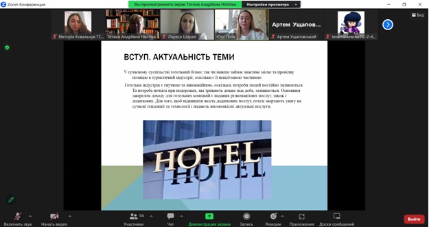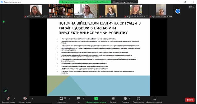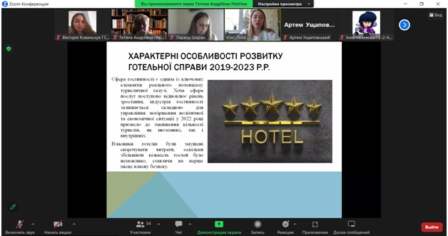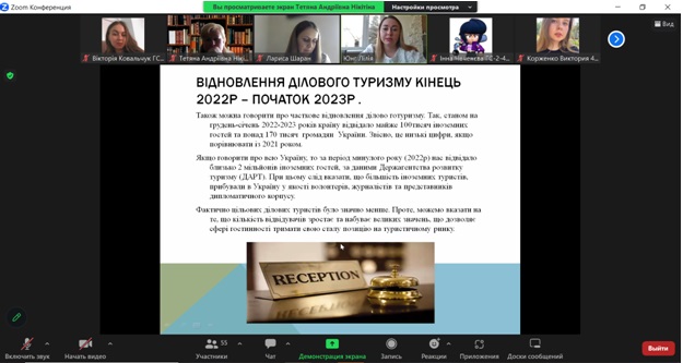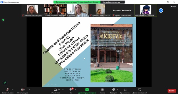 Під час освітньої зустрічі були розглянуті особливості розвитку готельного бізнесу в 2019-2023 рр.; відновлення ділового туризму наприкінці 2022 р. – початку 2023 р.; виклики, які постали перед готельним підприємством KIDEV і шляхи розширення контингенту споживачів.