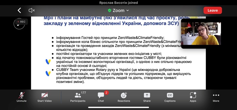 Організаторами також був презентований посібник «Відновлення і модернізація закладів гостинності на принципах Zero Waste&Climate Friendly для зеленого розвитку громад України (практичні кейси українських бізнесів)».