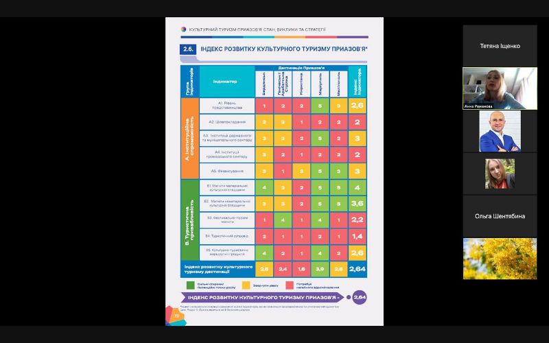 Наші викладачі дізналися про дослідження сучасного стану, викликів, перспектив розвитку культурного туризму Приазов’я, нову методологію досліджень дестинацій культурного туризму, удосконалення інструментів промоції та вироблення ефективних стратегій сталого розвитку культурного туризму у розрізі основних п’яти дестинацій (Бердянськ, Генічеськ, Кирилівка, Маріуполь, Мелітополь).