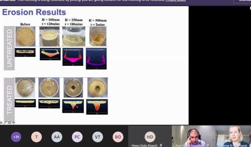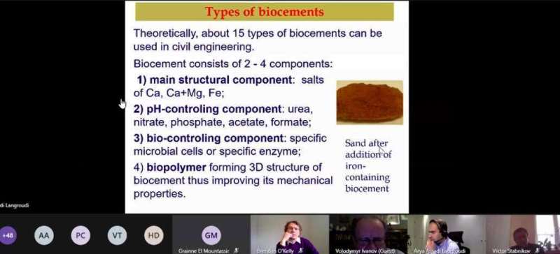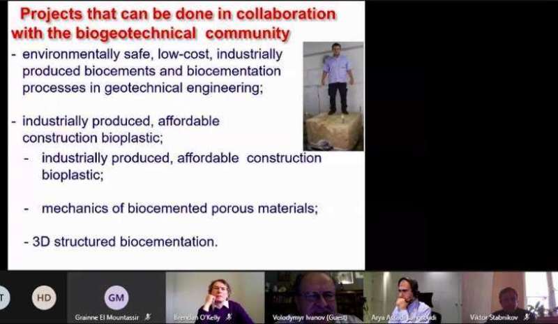 Слухачі дізналися, що використання звичайного цементу, наприклад, для закриття шпарин у дамбі, спричиняє значне забруднення вод і повітря сполуками амоніаку. Альтернативою звичайному цементу є біоцемент, проте, його вартість є вдвічі дорожчою. З метою зниження вартості біоцементу нашими вченими разом із професором Сатору Кавасакі з Університету Хоккайдо (Японія) були запропоновані бюджетні рішення для створення біоцементу із кісток – відходів м'ясопереробної промисловості та еластичних біополімерів, а також із вапняку, доломіту та цементного пилу шляхом бактеріального окиснення кальцій форміату/ацетату.