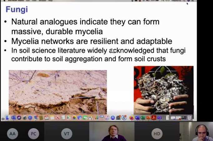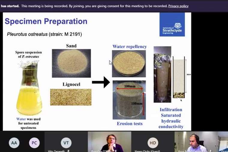 Лекція складалася з двох частин: першу частину «Imitating Natural Materials: A Philosophical Perspective» (Імітування природних матеріалів і перспективи їх використання) прочитав Генрі Дікса (Dr Henry Dicks, Centre for the History and Philosophy of Science, University of Leeds, England), лектором другої, не менш цікавої частини «Influence of fungal networks on soil behaviour» (Вплив грибного міцелію на геотехнічні показники ґрунтів) був Dr Grainne El Mountassir, University of Strathclyde, Scotland.