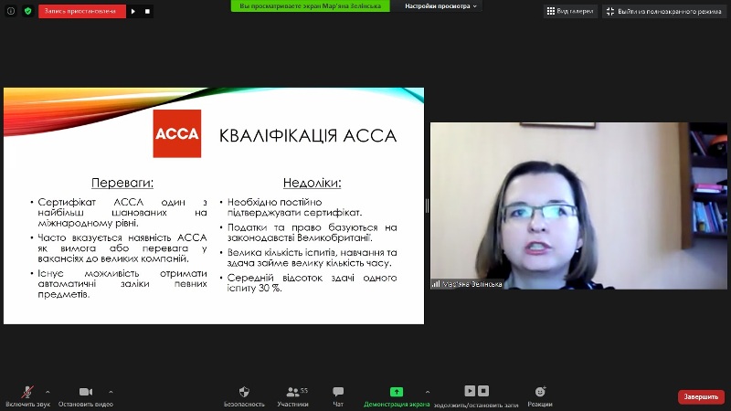 Гостя розкрила особливості міжнародної сертифікації за програмами САР/СІРА, ACCA, DipIFR(рус), IFA.