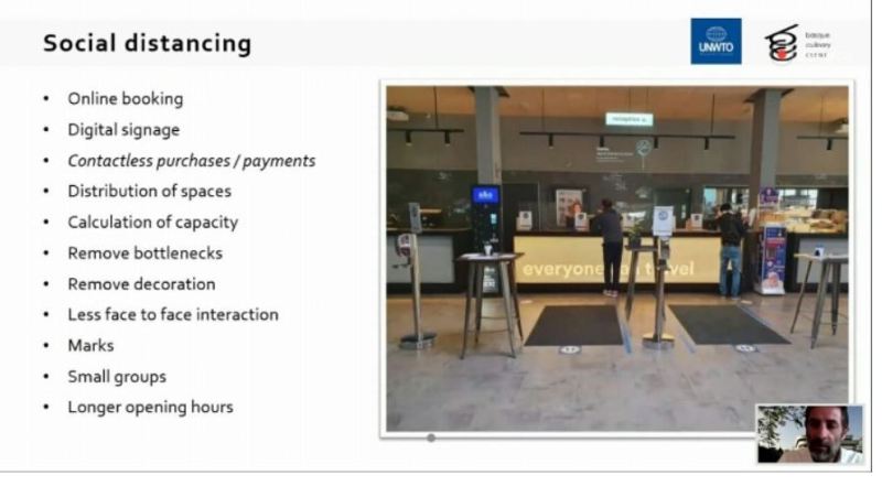 Координатор Майстра з гастрономічного туризму при БКК Девід Мора та начальник відділу інтелектуальної торгівлі та конкурентоспроможності Світової організації туризму Сандра Карвао поділилися проблемами відновлення гастрономічного туризму, і учасники відкрили для себе декілька важливих аспектів, які варто враховувати у гастрономічному туризмі після карантинної перерви. До них відносяться: онлайн-уроки кулінарії, віртуальні дегустації, співпраця з іншими компаніями або постачальниками, рекламування своєї продукції, формування клієнтської бази та створення програми лояльності, створення спеціального меню для підтримки імунітету (більше корисних інгредієнтів, насичених вітамінами та мінералами), зменшення взаємодії віч-на-віч, зміна бізнес-плану, введення інновацій, слідкування за чистотою та регулярне дезінфікування.