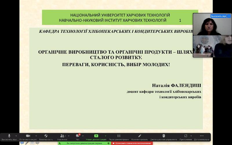 1 грудня 2025 року доцентка кафедри технології хлібопекарських і кондитерських виробів Наталія Фалендиш прочитала гостьову лекцію на тему «Органічне виробництво та органічні продукти – шлях до сталого розвитку. Переваги, корисність, вибір молодих!» для здобувачів груп 631 і 641 освітньо-професійної програми «Виробництво хліба, кондитерських, макаронних виробів і харчових концентратів» (спеціальність 181 «Харчові технології») Кам’янець-Подільського фахового коледжу харчової промисловості НУХТ.