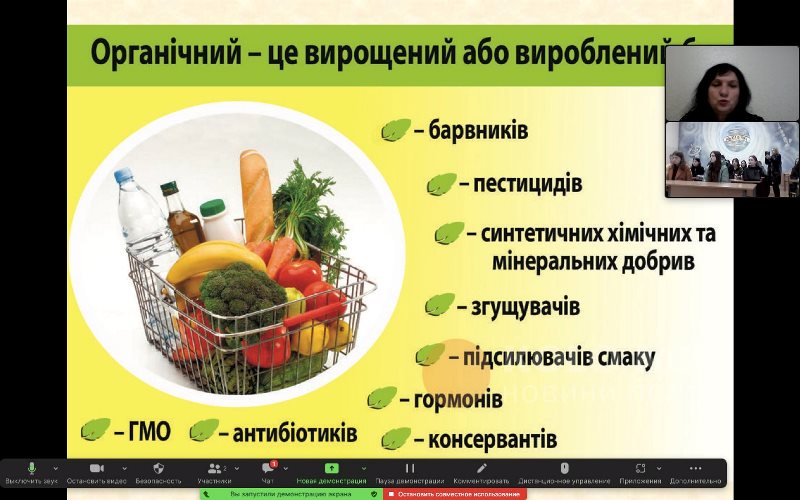 Лекторка ознайомила слухачів із перевагами органічного виробництва, розповіла про його вплив на клімат і біорізноманіття. Слухачі переконались, що органічні продукти – дуже корисні та безпечні.