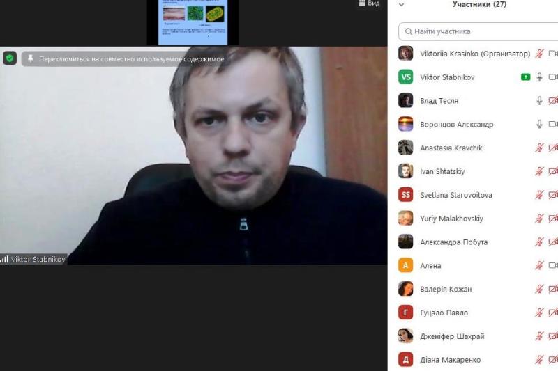 Нещодавно відбулася відкрита лекція завідувача кафедри біотехнології і мікробіології Віктора Стабнікова, яку відвідав практично увесь викладацький колектив кафедри. Заняття на тему «Роль мікроорганізмів у кругообігу речовин у природі» було проведене для здобувачів спеціальності101 «Екологія», освітньо-професійної програми «Екологія, охорона навколишнього середовища та збалансоване природокористування».
