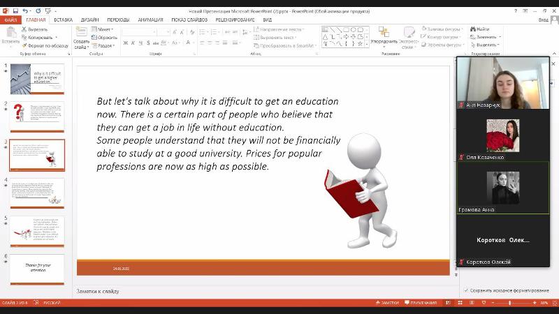 До Міжнародного дня освіти, який відзначають 24 січня, викладачка кафедри іноземних мов професійного спрямування Катерина Рудницька зі студентами 3 курсу спеціальності «Готельно-ресторанна справа» провела тематичний англомовний захід стосовно ролі освіти для миру та розвитку.