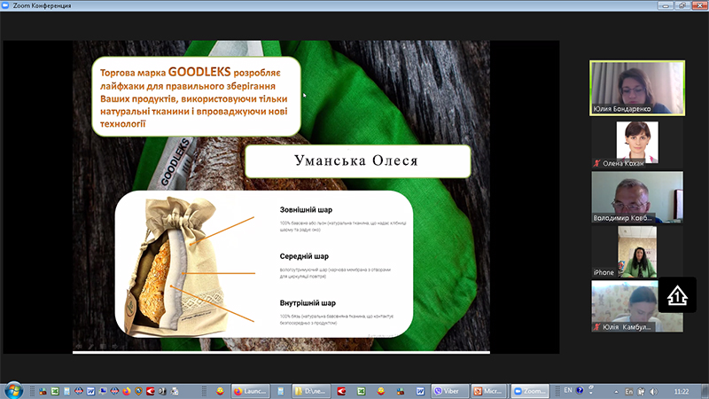 Під час лекції здобувачі дізналися про сучасні тенденції зберігання хлібобулочних виробів у багатошарових мішечках із льняної тканини. Також Олеся Уманська розповіла про спеціальні мішечки та сумки для зберігання крупів, серветки для овочів та зелені, провощені пакети для сиру та ковбасних виробів, які сприяють кращому збереженню свіжості продукції та дають можливість уникнути використання багатьох полімерних матеріалів. Таким чином використання розробленої компанією продукції дає можливість уникнути потрапляння небезпечних речовин пакувальних матеріалів у продукт і знизити рівень забруднення довкілля завдяки можливості довготривалого використання.
