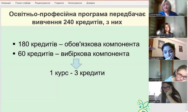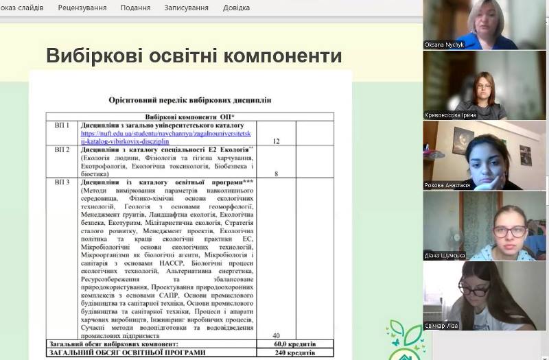 Гарантка програми пояснила, хто такий гарант і яку роль він відіграє в освітньому процесі. Вона поділилася власним баченням навчальної траєкторії еколога: від фундаментальних дисциплін до практики та міжнародних можливостей. Окрему увагу приділила вибору вибіркових компонентів та формуванню власного навчального плану, у тому числі в межах академічної мобільності. Роз'яснила можливості дуальної освіти, неформального та інформального навчання.